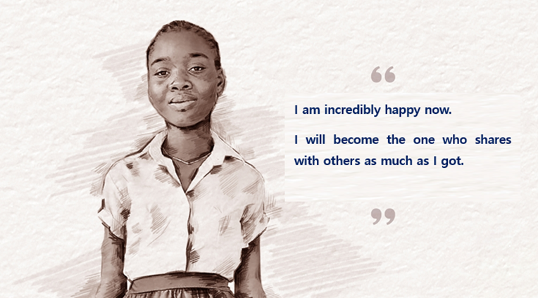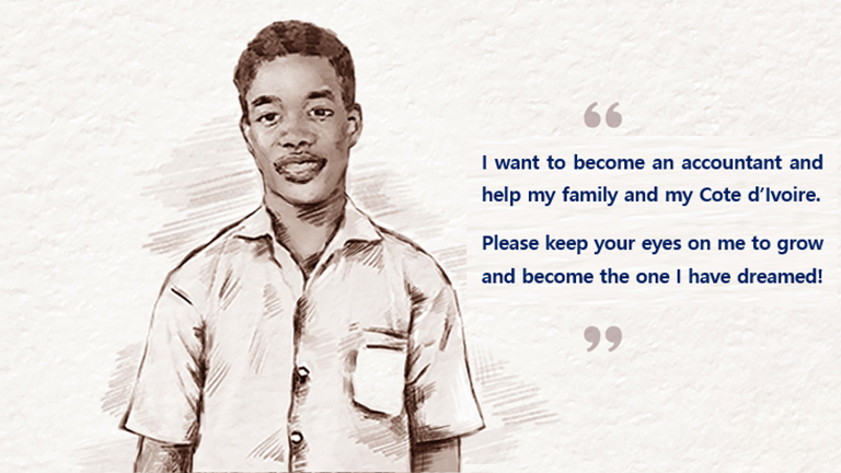 Esther (pseudonym)'s family situation was so poor that everyone in the village knew. Despite contemplating giving up on her studies, Esther was able to start anew, thanks to the unwavering support from her elder sister and the generosity of her sponsor. Esther never once arrived late and consistently earned good grades every semester, earning a reputation among her teachers as a diligent and hardworking student. As a result of her diligent efforts, Esther secured admission to 'Abidjan University,' which is the best university of Cote d'Ivoire. Esther, while juggling her studies and part-time work, faces the demanding life of an adult. However, she is determined to continue her diligent academic journey, always grateful for the support she has received, and she pledges to give back and share even more.